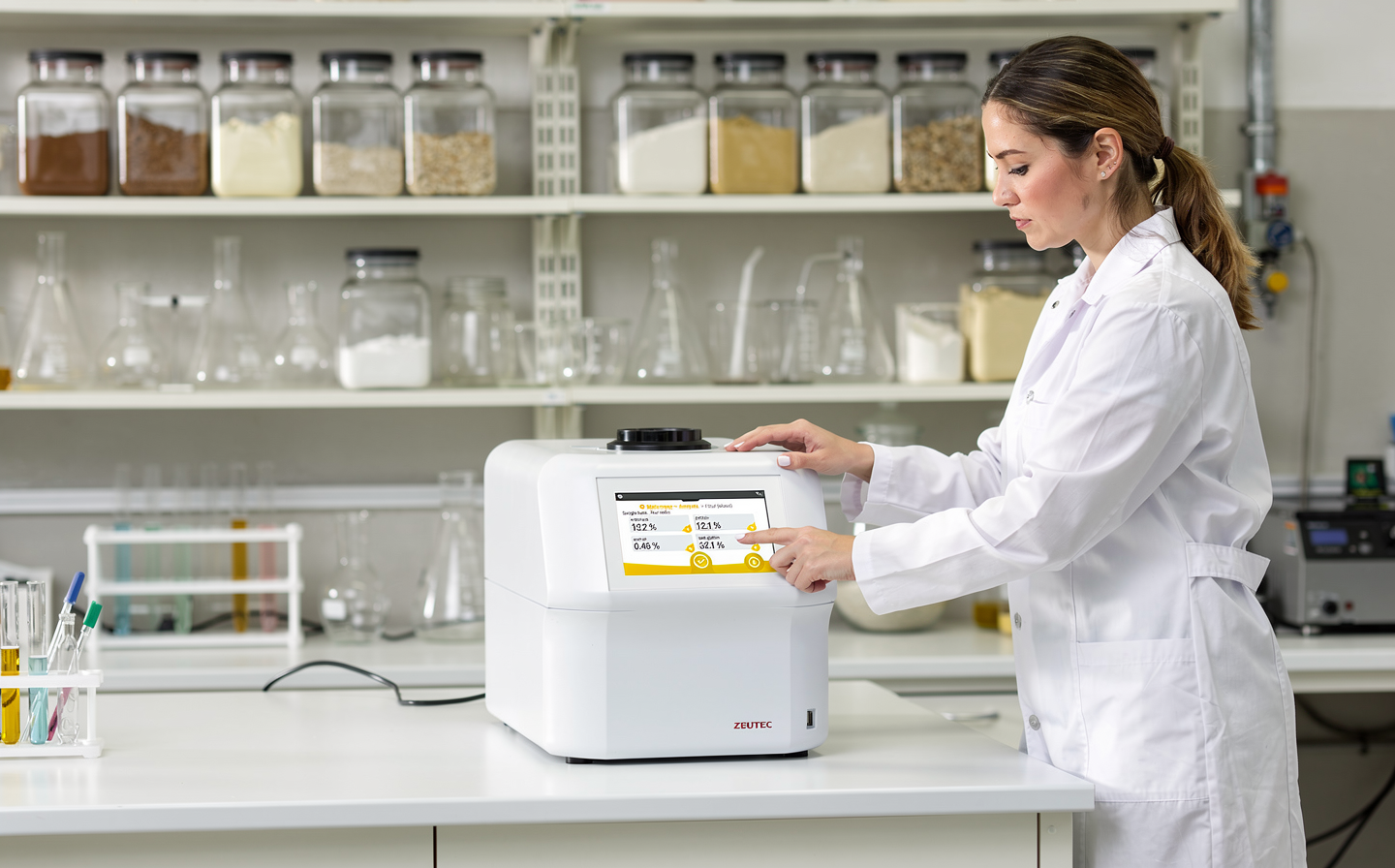 The SpectraAlyzer® FLOUR provides rapid and reliable analysis of key flour quality parameters – including ash, moisture, protein, gluten, starch, and color – delivering accurate results in less than 45 seconds. This allows millers to continuously monitor flour streams and optimize extraction rates while ensuring that flour specifications are consistently met.
